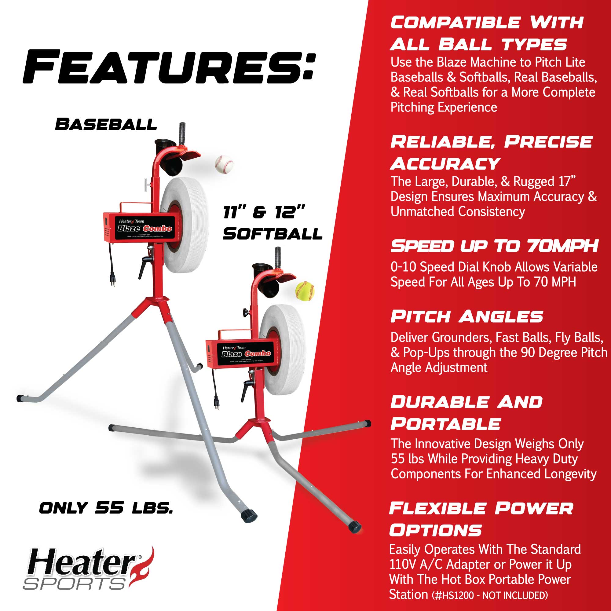 Elevate your baseball and softball training regimen with the groundbreaking Heater Sports Blaze Combo Heavy Duty Pitching Machine. Engineered for performance, durability, and versatility, this innovative machine redefines batting and fielding practice with its cutting-edge features.