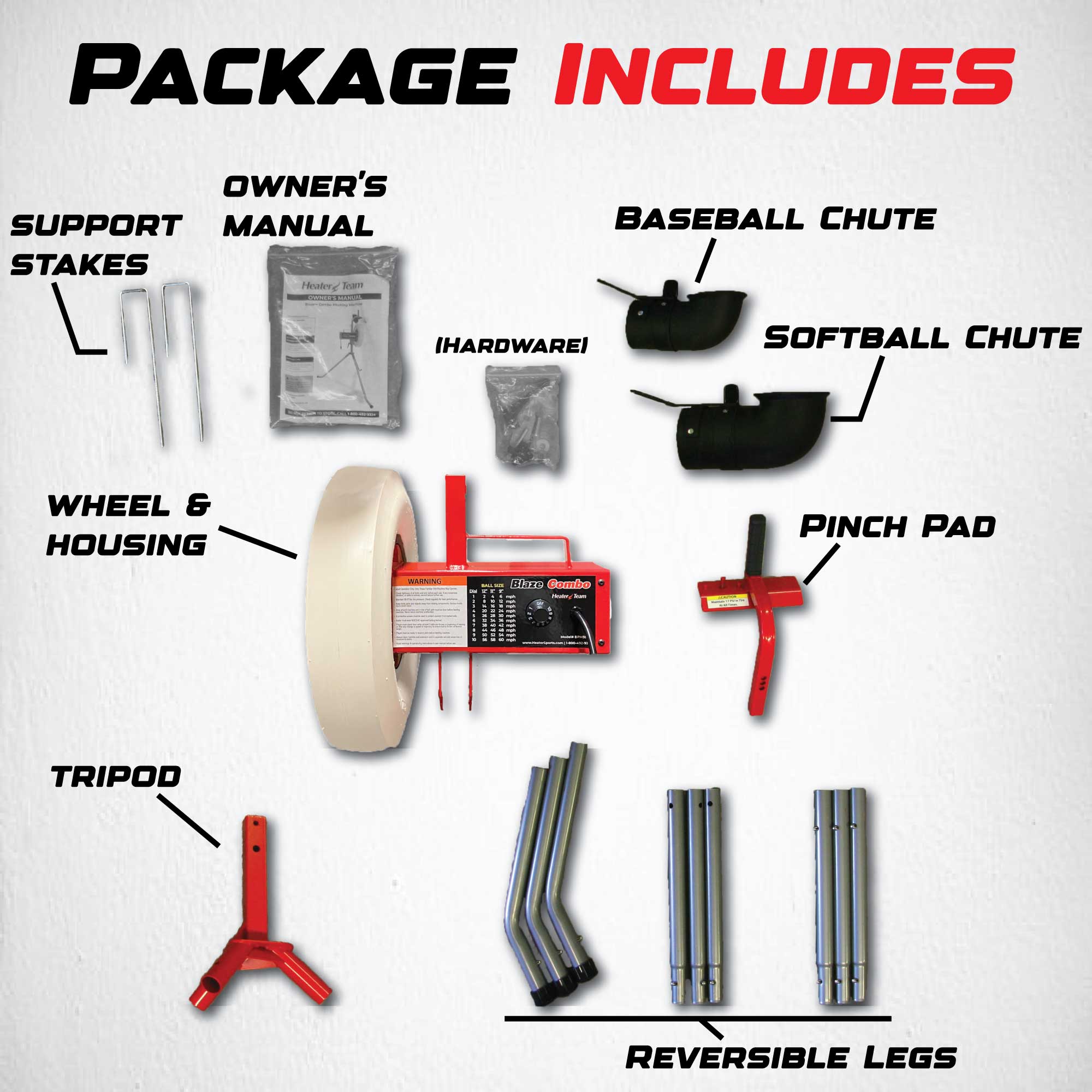 The heart of the Blaze is its 1/4 HP Heavy Duty Motor. This motor is built-to-last with its durable construction and meets every pitching demand which is backed by the Blaze warranty.